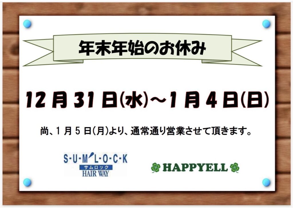 1月12日(月)は成人式の為、17時までの変則営業となります。